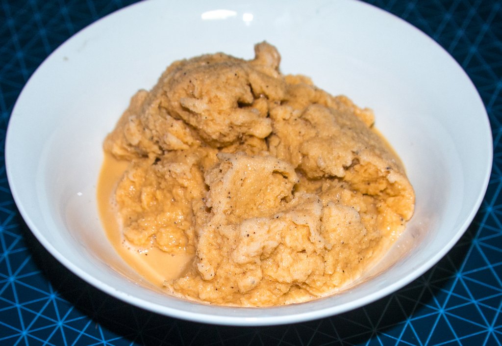 A couple hours in advance, boil four cups of water. Put the tea leaves in a tea ball and put this in the boiled water in a mixing bowl. Let it sit for a few minutes, and then stir in the milk powder. This should turn into something thicker than whole milk, which is my way of avoiding using actual cream. You can of course do that if you want something more authentic but also more calorie-dense. Mix well, remove the tea ball, and refrigerate.