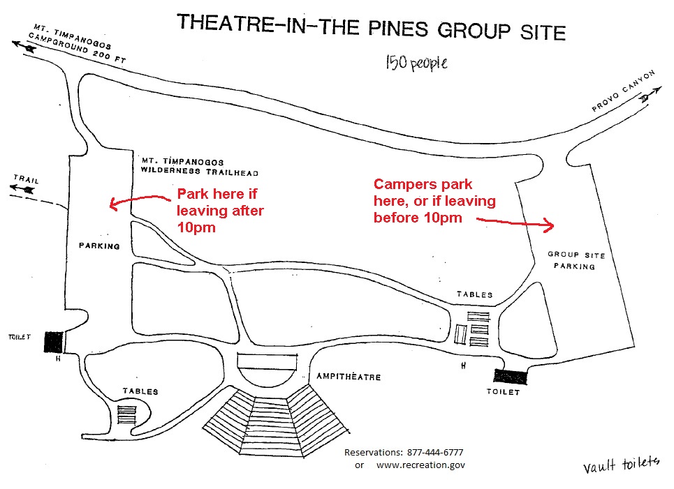 The wedding and reception and all other events (see the schedule) will be held at Theater-in-the-Pines Group Campground, located about 13 miles from Orem, UT, or 17 miles from Provo.